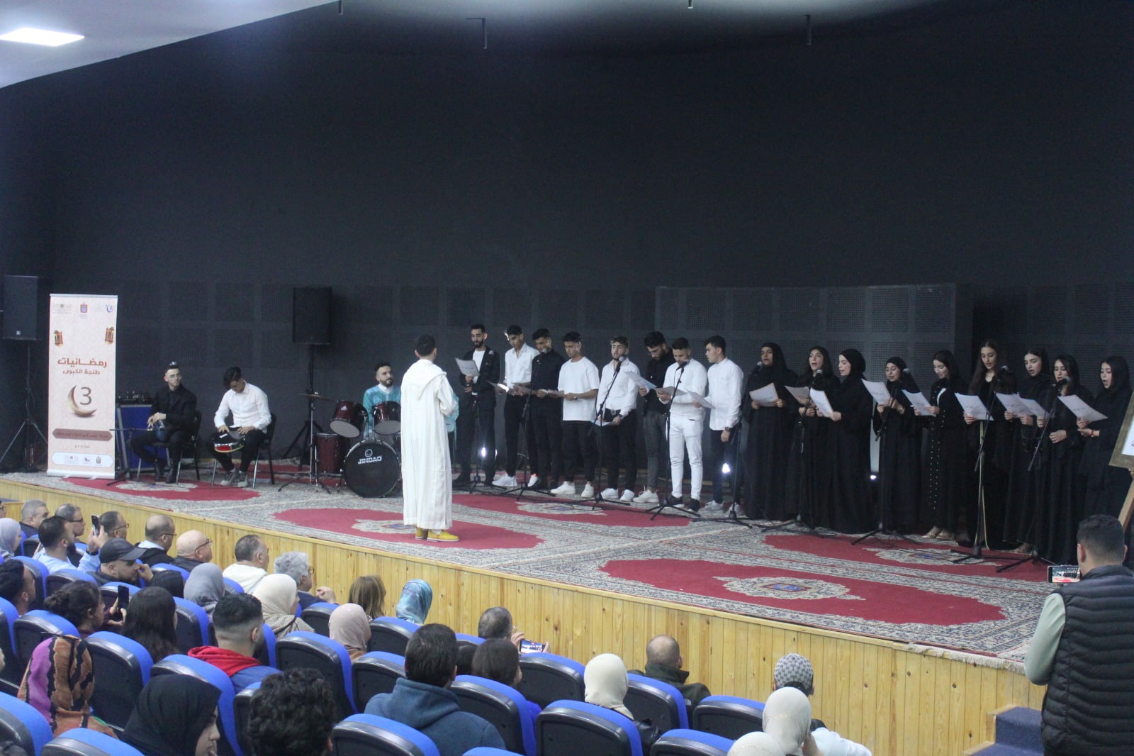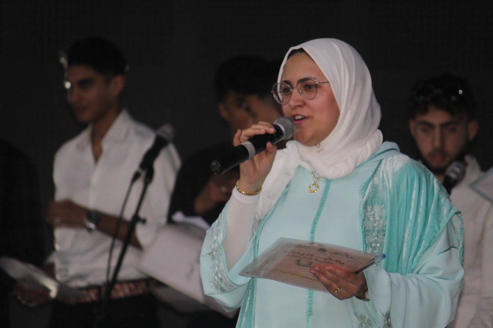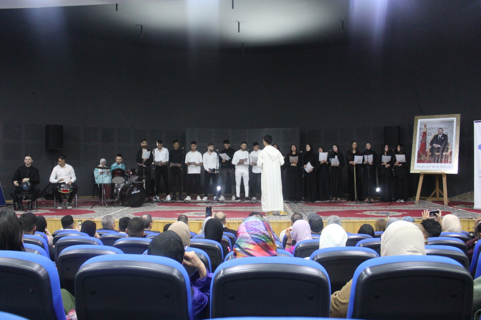 من قاعة “محمد اليوسفي” في دار الشباب-حسنونة، تألقت المجموعة بقيادة الفنان الشاب ابراهيم الحموشي، حيث أبهرت الحضور بأغانيها وموشحاتها الدينية والتراثية، محققة تفاعلًا مثيرًا وتفاعلًا حارًا من الجمهور.
