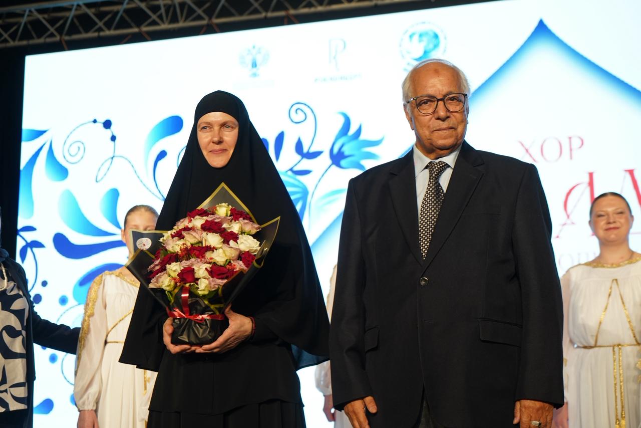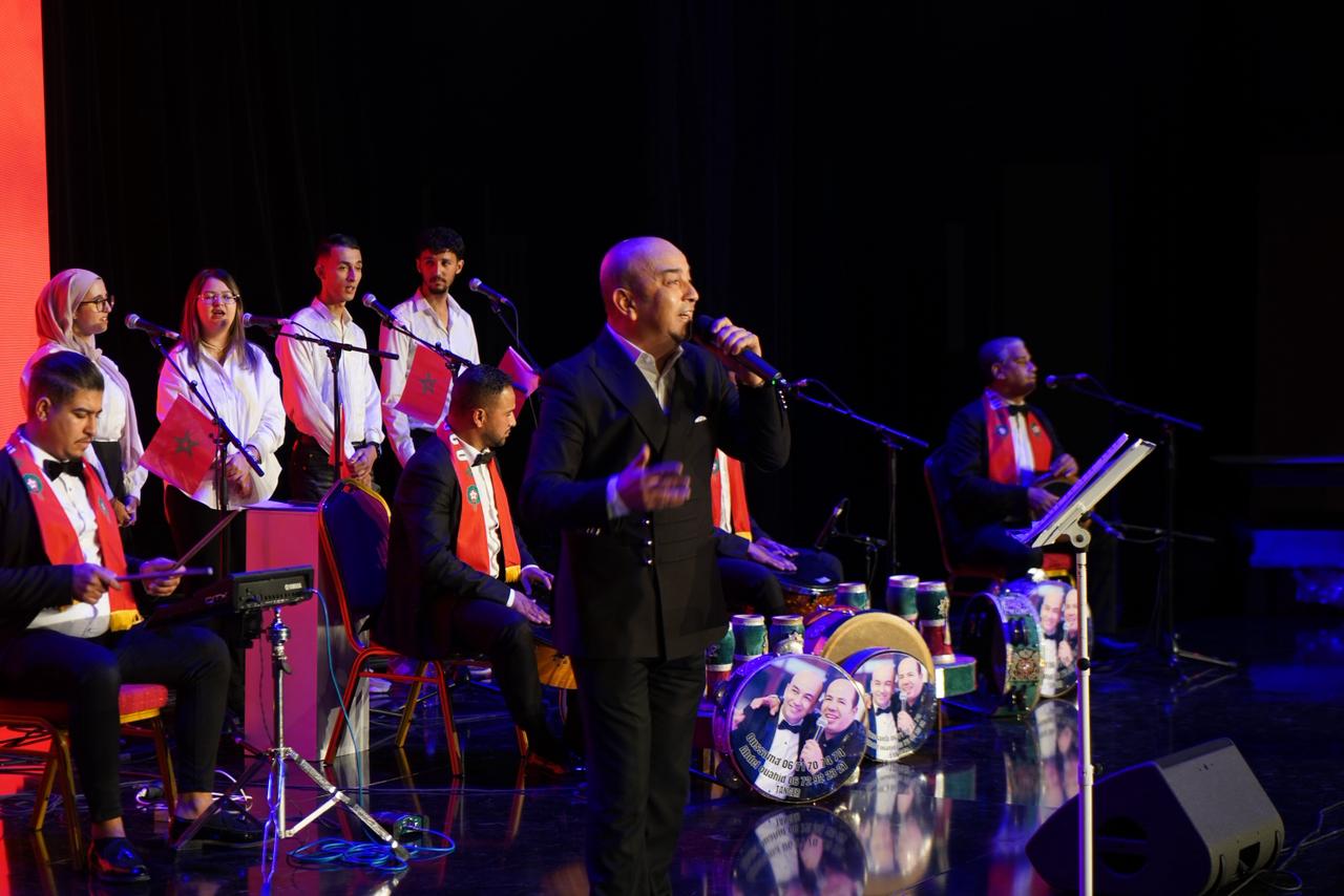 وتوالت الفقرات الفنية التي عكست تنوع الإبداع المغربي وثراءه، حيث تألق الفنان أسامة عبد الدايم في أداء أغنياتٍ وطنية بصوته العذب وإحساسه العالي، تلاه الفنان عبد الواحد القصري الذي أتحف الحضور بوصلة تراثية مغربية مزجت بين الإيقاع الشعبي والعاطفة الوطنية. كما قدمت فرقة “أوترادا” الروسية للفلكلور عرضًا استعراضياً جميلاً عبّر عن قيم الصداقة الثقافية بين الشعوب، وعن التقدير الذي تحظى به المسيرة الخضراء كرمزٍ للسلم والوحدة في ذاكرة العالم.